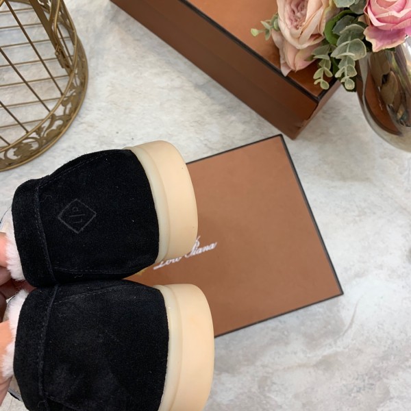 로로피아나 썸머 참 워크 스웨이드 퍼 블랙 로퍼 > 플랫/로퍼