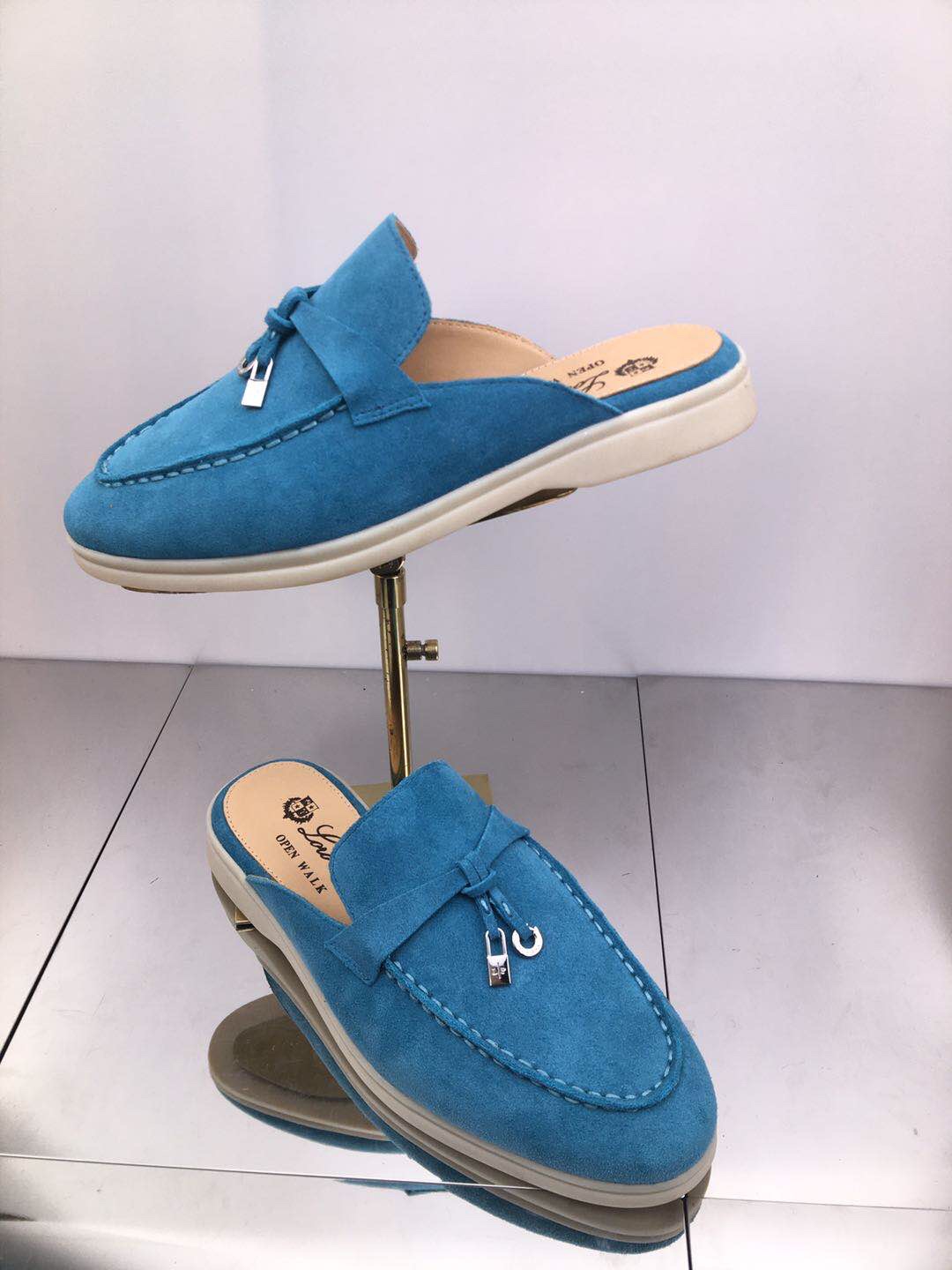로로피아나 썸머워크 참 블루 스웨이드 블로퍼 > 플랫/로퍼