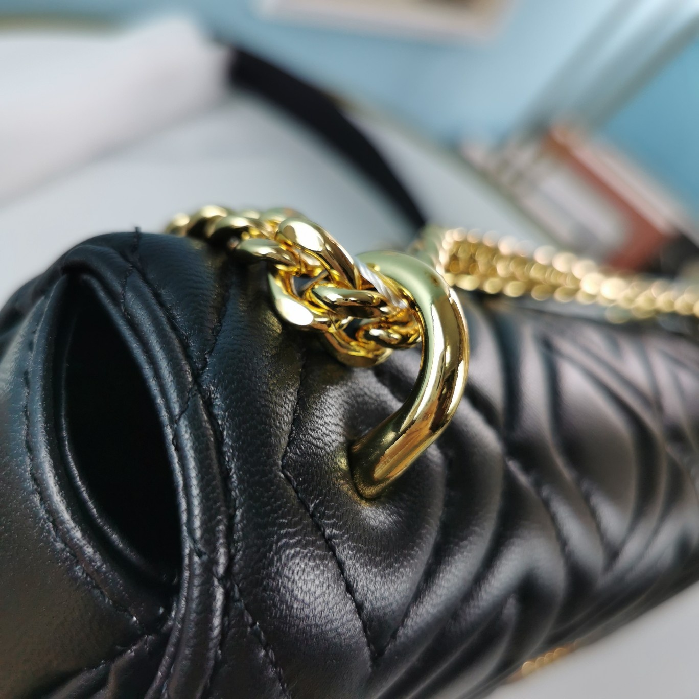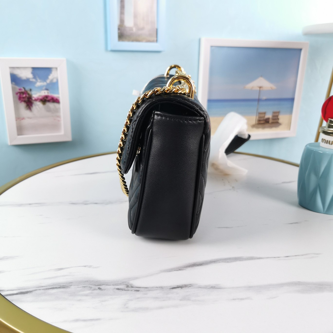 • 미우미우 마틀라세 블랙 퀼팅 체인 숄더백 5BD140