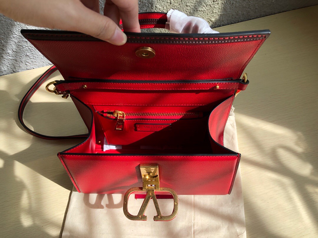 • 발렌티노 Garavani Vsling 레드 스몰 탑 핸들 숄더백