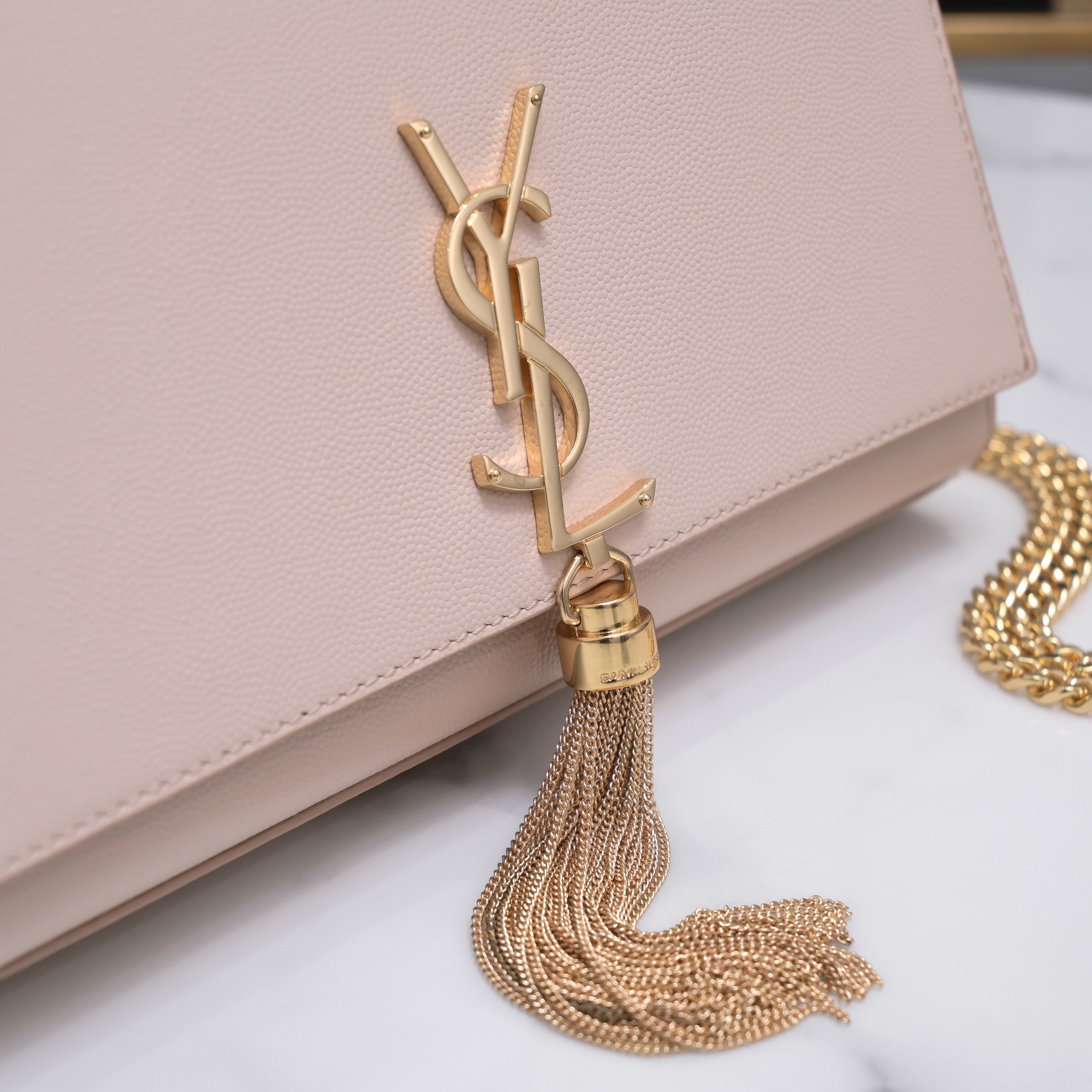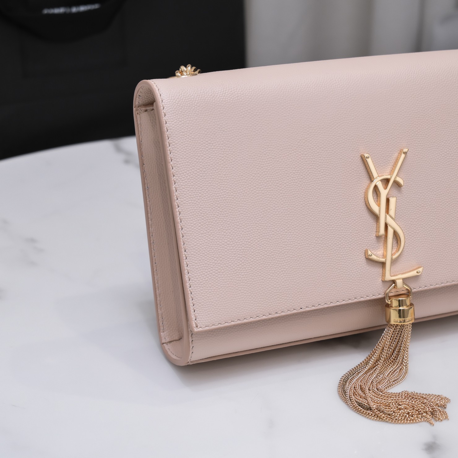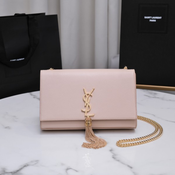 세인트롤랜드 가죽 소재의 클래식 케이트 모노그램 생 로랑 태슬 체인 지갑 > 입생로랑