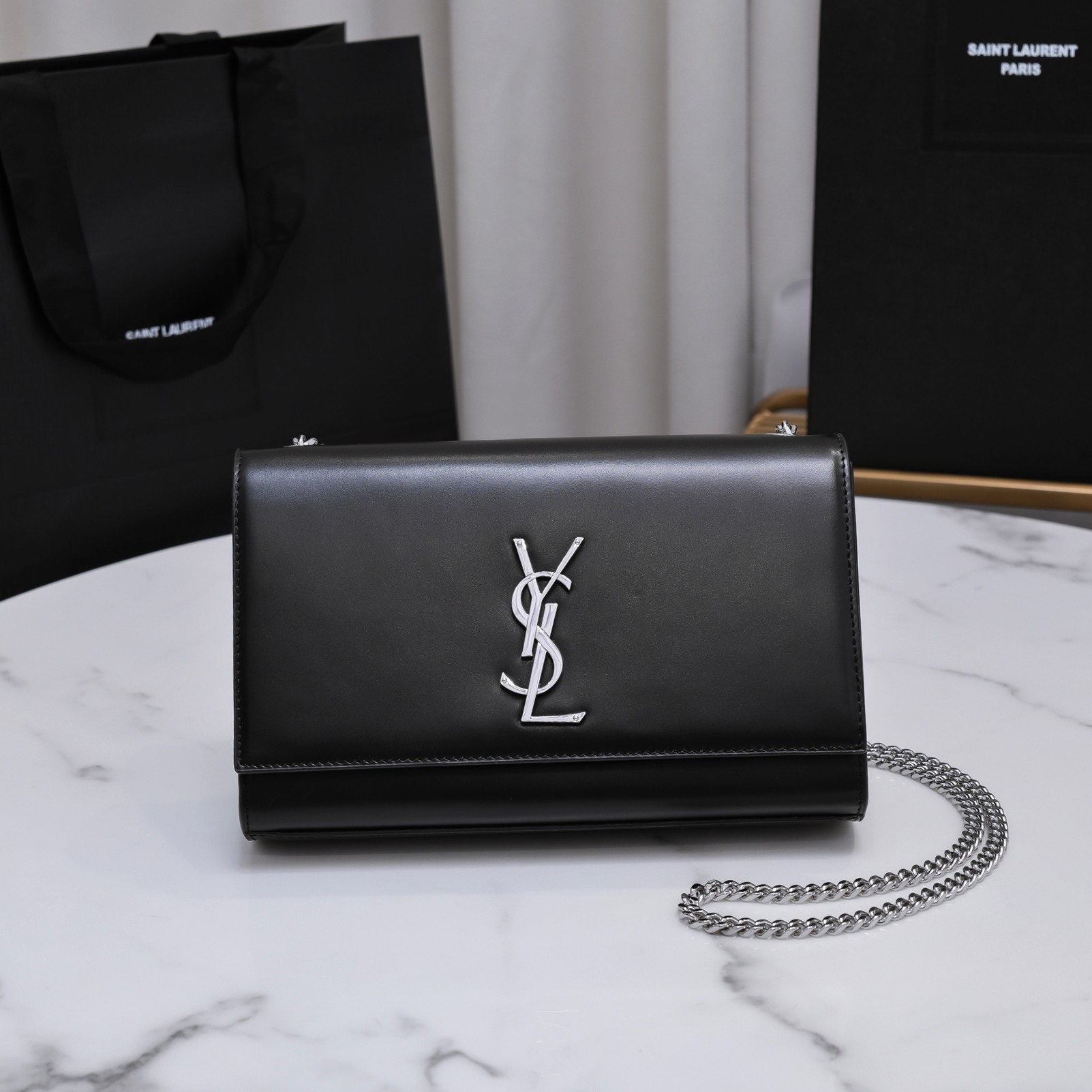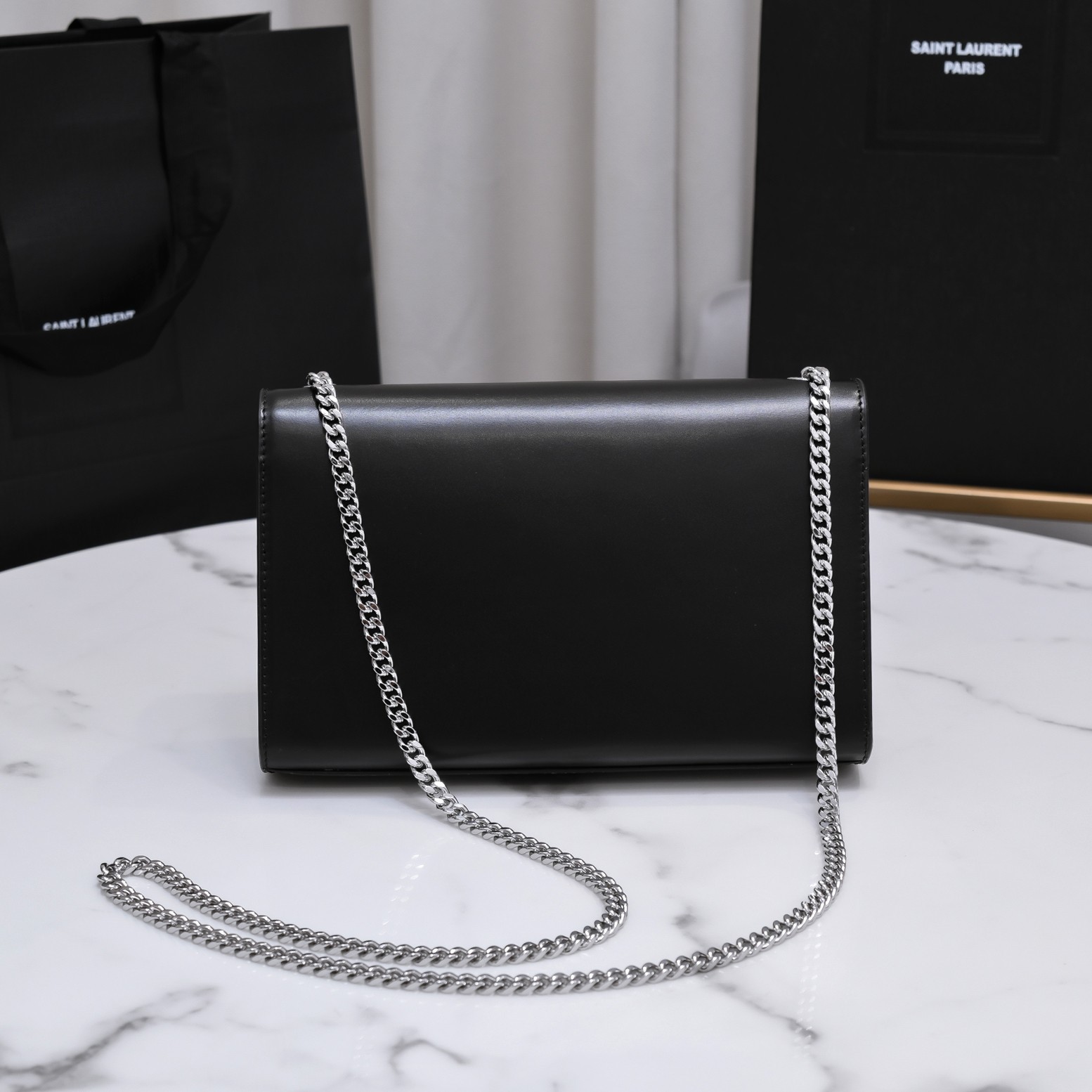 세인트롤랜드 그랑 드 뿌드르 엠보스드 가죽 소재의 업타운 체인 지갑 > 입생로랑
