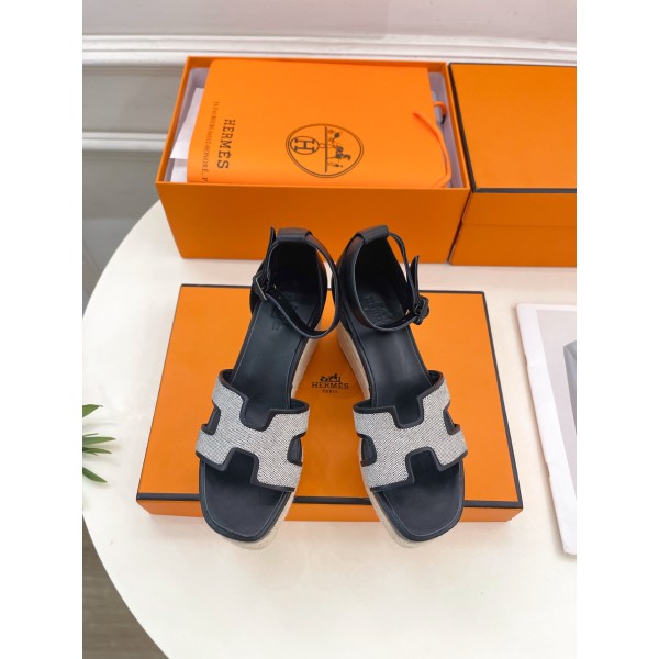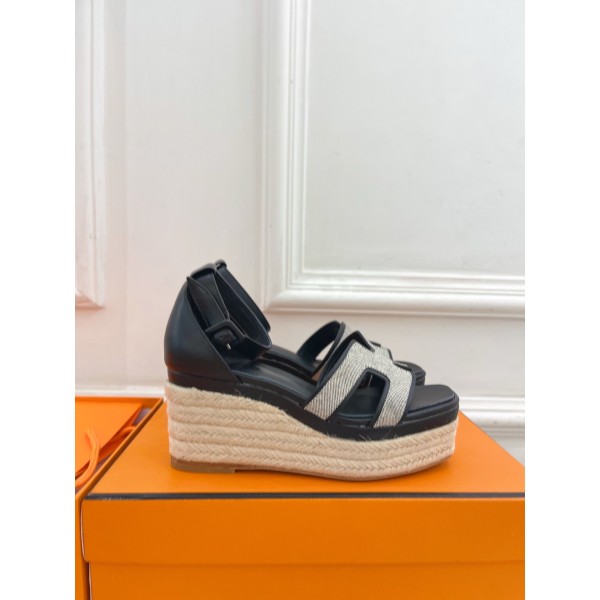 H 스트랩 웨지샌들 겉감: 맞춤 제작된 프리미엄 소가죽 안감: 수입 양가죽 밑창: 천연 가죽 아웃솔 굽 높이: 뒷굽 8cm / 앞 4cm  사이즈: 35~41 ㅡ #신발