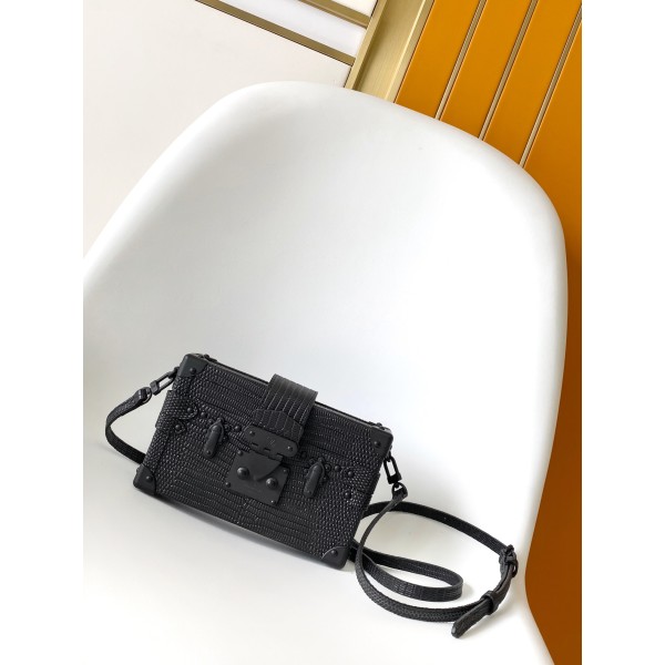 PETITE MALLE 핸드백 M85818 블랙 가죽 클래식한 모노그램 캔버스 소재 사용 Albert Kahn의 맞춤형 트렁크에서 디자인 영감 화이트 십자 문양 3개가 포인트인 시그니처 요소 우아하고 클래식한 감성의 프리미엄 미니백 사이즈 : 20 x 12.5 x 6cm ㅡ #가방