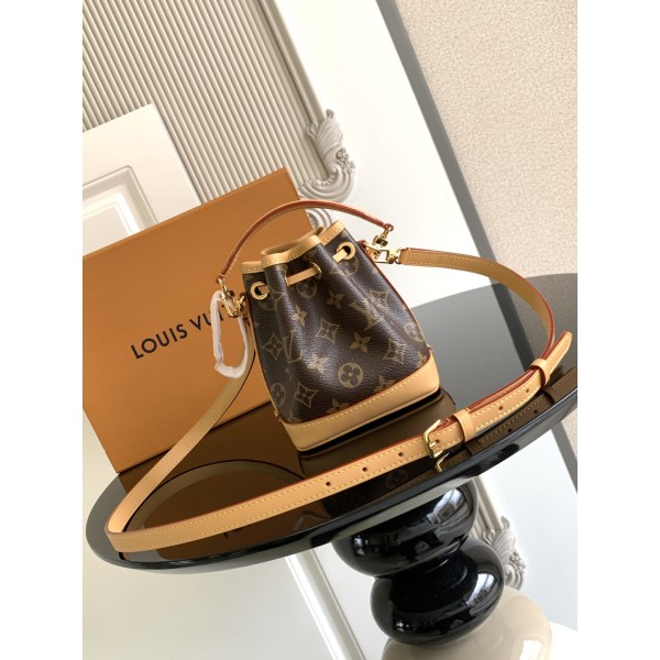 M81266 / Nano Noé 나노 노에 버킷백 이탈리아산 A급 Monogram 캔버스 천연 소가죽 트리밍 수입 A급 풀스틸 하드웨어 탈부착 가능한 손잡이와 조절 가능한 숄더 스트랩 토트, 숄더, 크로스백 등 다양한 스타일로 연출 가능 사이즈: 13.0 x 16.0 x 10.0 cm (가로 x 세로 x 폭) ㅡ #가방