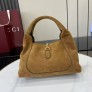 브랜드 시그니처 반 마구 장식 포인트 구성: 풀 세트 오리지널 패키지 소재: 브라운 스웨이드 / 브라운 마이크로파이버 안감 하드웨어: 라이트 골드톤 수납: iPhone Pro Max, AirPods, 장지갑, 립스틱 수납 가능 마그네틱 플랩 클로징 / 핸들 높이 15cm 모델: 837467 무게: 약 0.6kg 사이즈: 27.5×21×16cm ㅡ #가방