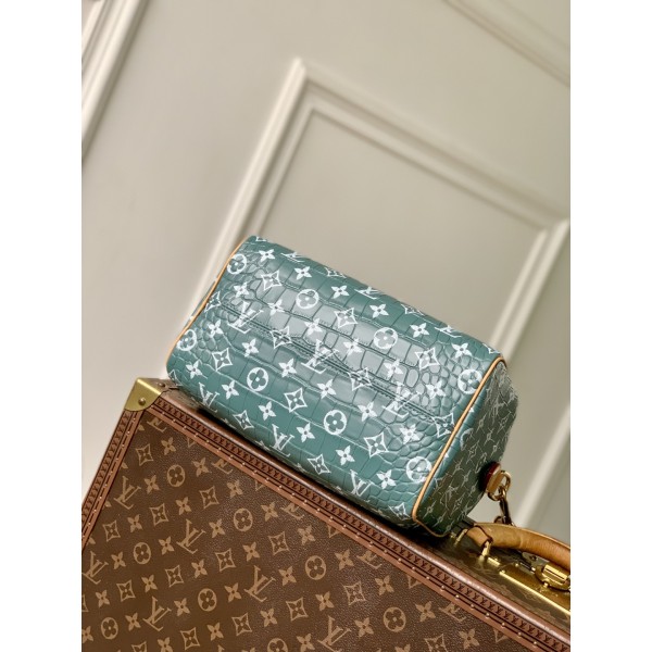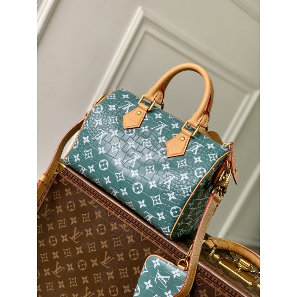 디자인: 퍼렐 윌리엄스(Pharrell Williams)의 클래식 모노그램 패턴. 소재: 악어가죽에 스크린 프린팅 방식으로 모노그램 구현. 특징: 윌리엄스의 시그니처인 느슨하고 자연스러운 효과를 위해 가죽에 의류 가공 처리 적용. 마감: 가공 처리를 통해 고급스러움 강조. 크기: 25 x 15 x 15cm (길이 x 높이 x 너비). ㅡ #가방