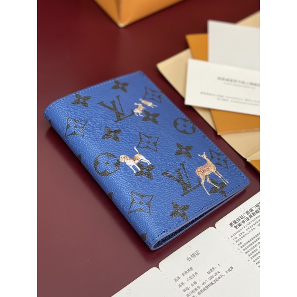 Monogram Forest 패스포트 커버 블루 컬러·양면 숲속 동물 그래픽 내부 카드 슬롯·포켓 구성 실용성과 디자인 모두 강조 사이즈: 14 × 2.5 × 10cm ㅡ #지갑