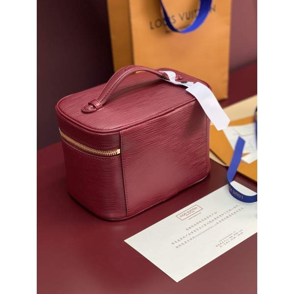 Nice Nano 중형 화장품 파우치(레드) Epi 그레인 가죽, 세탁 가능한 안감 LV 뷰티 컬렉션 립스틱 색상과 조화 더블 지퍼 여밈, 내부 포켓 구성 여행용으로 충분한 수납 공간 제공 사이즈: 13.5 × 12 × 20cm ㅡ #가방