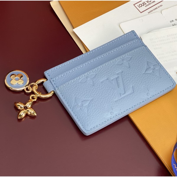 LV Charms 카드지갑(블루) LV Ski 시리즈, Monogram Empreinte 가죽 에나멜 및 금속 소재 Monogram 플라워 장식 양쪽 카드 슬롯, 중앙 대형 수납 공간 사이즈: 7.3 × 0.3 × 10.2cm ㅡ #지갑