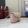 수입 정품원단 사용, 풀패키지 구성. GG Marmont 신상 디자인, 더블 G 장식 & 체인 스트랩 활용 가능. 블랙 V퀼팅 양가죽, 라이트 골드 하드웨어 적용. 내부 지퍼포켓, 외부 오픈포켓 구성. 사이즈: 16.5 × 9.5 × 4.5cm ㅡ #가방
