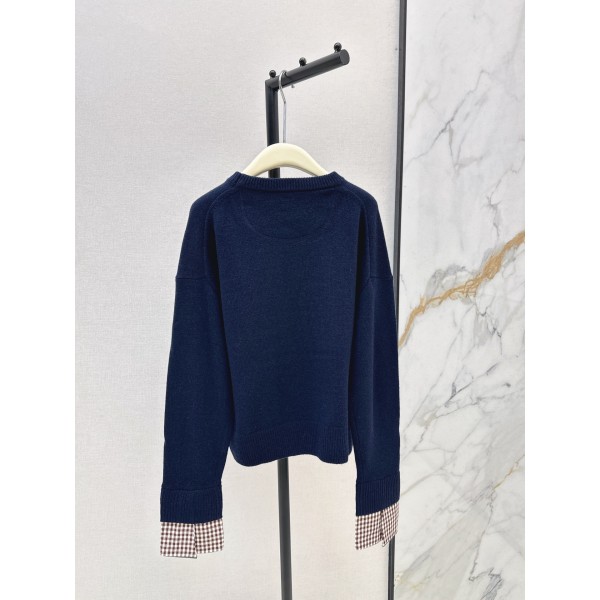 페이크 레이어드 캐시미어 니트 체인 디테일 + 체크 소매 디자인 포인트 라운드넥·루즈핏·드롭 숄더로 여리하고 슬림해 보임 미니멀 감성의 올드머니 무드 2컬러 S/M/L ㅡ #의류