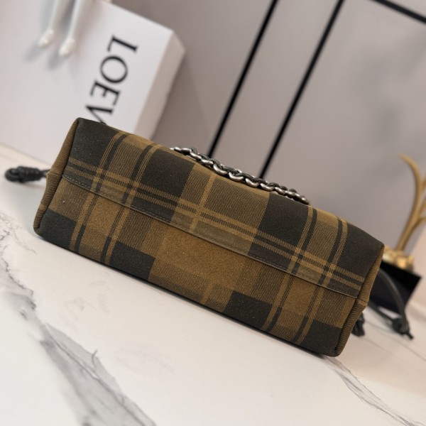 특징: 로에베의 아이코닉한 플라멩코 라인으로, 클래식한 체크 패턴이 프린트된 소프트 스웨이드(융면 가죽) 소재를 사용해 빈티지하면서도 세련된 무드를 완성했습니다. 디테일: * 멀티 스트랩: 탈부착 가능한 도넛 체인과 조절 가능한 가죽 스트랩이 포함되어 숄더, 크로스, 클러치로 자유롭게 연출 가능합니다. 포인트: 가죽 끈 끝의 시그니처 매듭과 체인에 장식된 아나그램 페블(Anagram pebble) 장식이 고급스러움을 더합니다. 소재 및 마감: 부드러운 나파 양가죽 안감과 정교한 레이저 로고 각인, 마그네틱 클로저 적용. 사이즈: 30 × 10.5 × 20cm (모델번호: 012403) ㅡ #가방