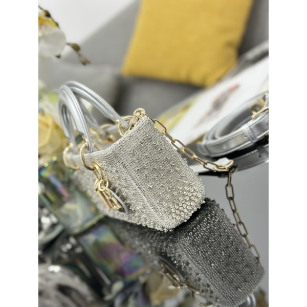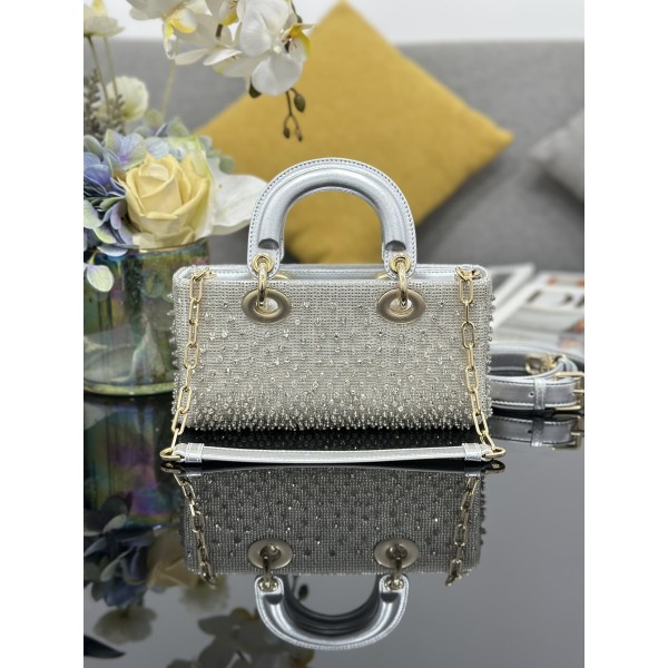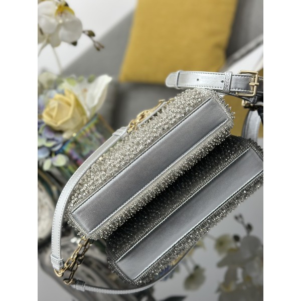 디자인: 레이디 디올의 클래식한 코드를 가로로 긴 현대적인 실루엣으로 재해석한 D-Joy 라인의 스몰 버전입니다. 정교한 **비즈 자수**가 백 전체를 감싸고 있어 극강의 화려함과 우아함을 동시에 선사합니다. 소재 및 마감: 은은하고 고급스러운 광택을 머금은 새틴(Satin) 소재를 베이스로 하며, 내부는 부드럽고 탄탄한 **양가죽**으로 마감하여 형태를 정교하게 유지합니다. 디테일: 연한 골드 마감의 D.I.O.R. 참이 장식되어 움직일 때마다 빛을 반사하며, 자수 디테일과 어우러져 한층 더 영롱한 무드를 자아냅니다. 활용도: 탈부착 체인 스트랩과 길이 조절 가능한 가죽 스트랩이 모두 제공됩니다. 토트로 들었을 때는 단아하고, 체인을 연결해 숄더나 크로스로 메면 세련된 데일리 및 이브닝 룩이 완성됩니다. 사이즈: 22 × 12 × 6cm (모델번호: M0613) ㅡ #가방
