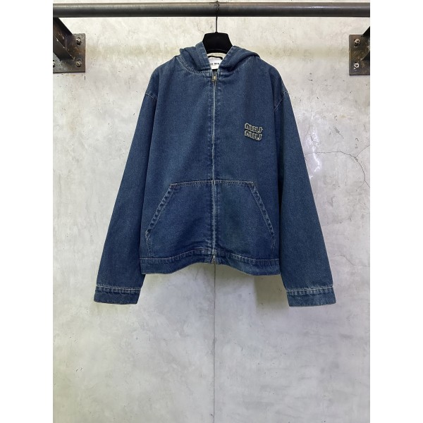 미우미우(MiuMiu) 로고 자수 후드 집업 데님 자켓 재킷 의류 > 남성 아우터
