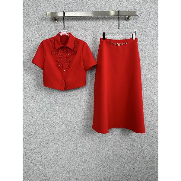 발렌티노(Valentino) 입체 꽃 장식 쥬얼 셋업 상의 하의 스커트 세트 의류 > 여성 TEE& TOP