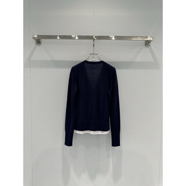"포근한 니트와 섬세한 레이스의 만남, 러블리한 발레코어 무드" 디자인: 가슴 부분의 **레이스 스트랩**과 밑단의 레이스 프릴 배색이 돋보이는 디자인 소재: 피부에 자극 없이 닿는 부드러운 고급 니트 소재 핏: 바디 라인을 슬림하게 잡아주는 슬림핏 & 얼굴이 작아 보이는 V넥 라인 스타일: 앤앤델만 특유의 해체주의적 감성에 페미닌한 감성을 더한 유니크한 스타일 활용도: 테니스 스커트와 매치해 프레피룩으로, 혹은 데님과 함께 믹스매치 룩으로 연출 가능 컬러: 차분한 그레이 / 지적인 네이비 사이즈: S / M / L ㅡ #의류