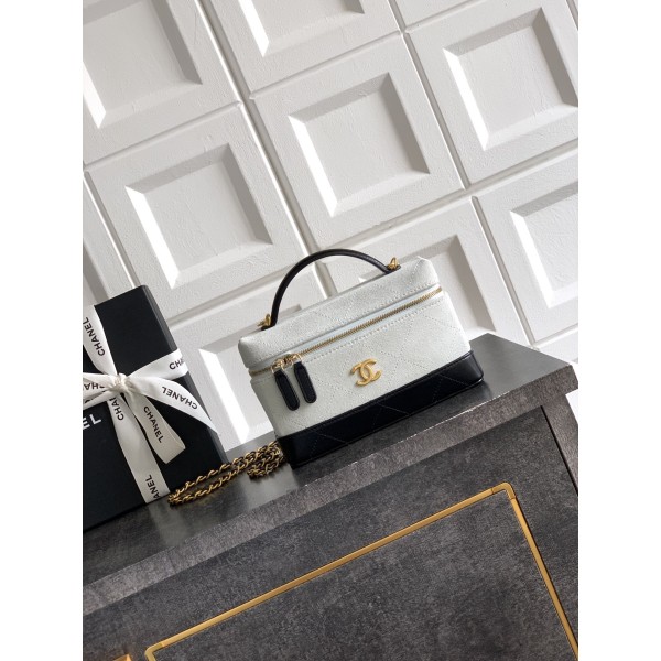 디자인: 시크한 블랙 램스킨과 차분하고 도시적인 라이트 그레이 스웨이드의 모던한 질감 대비 무드: 흑백의 미학이 돋보이는 **'타임리스 클래식'**의 정석, 어떤 룩에도 스며드는 고급스러운 무채색 조합 포인트: 탄탄하고 귀여운 사각 셰이프와 빈티지한 감성의 더블 체인 디테일 활용도: 숄더·크로스부터 핸들 토트까지 가능한 2-Way 스타일링 & 작지만 알찬 반전 수납력 사이즈: 19cm (유행을 타지 않는 가장 실용적인 황금 사이즈) ㅡ #가방