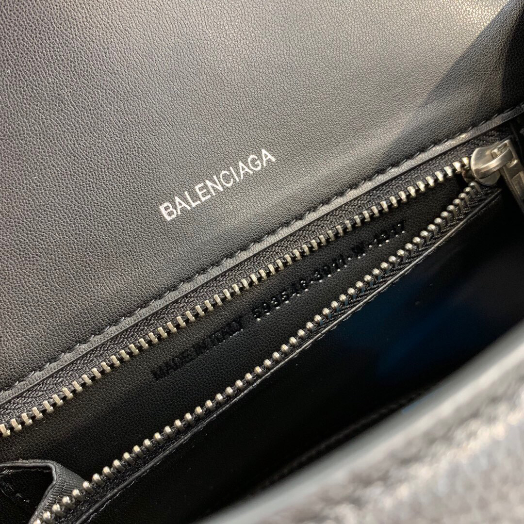 • 발렌시아가 스몰 Hourglass 블랙 탑핸들 백